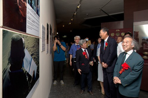 仪式最后,由郝远、横井裕、户思社、樊锦诗、平山廉、宫迴正明、王旭东、陈建中、马聪、马玉萍、杜志学为展览剪彩。开幕式结束后,在场领导和嘉宾一同参观了展览。